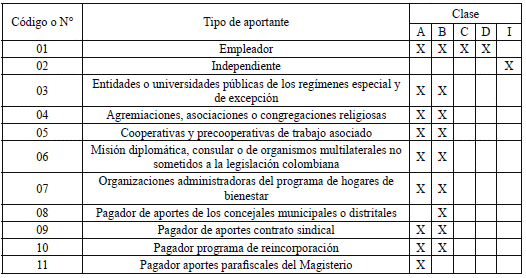 Tabla 10. R05 – Regla de validación – tipo de cotizante vs. clase de aportante