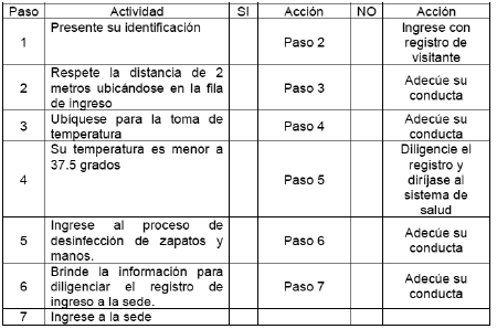 - Controles de sintomatología al ingreso de la entidad de manera diaria a todos los colaboradores que asistan a la entidad.