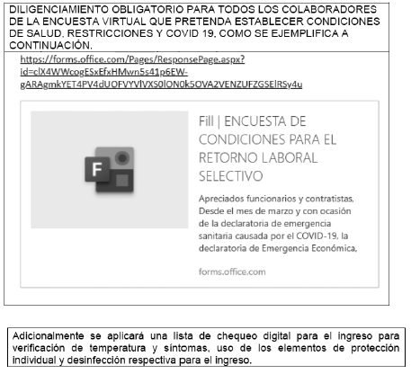 - Los colaboradores deben diligenciar las encuestas de condiciones de salud que se envíen por correo electrónico del Grupo de Talento Humano o correo masivo del Ministerio y las actualizaciones correspondientes.