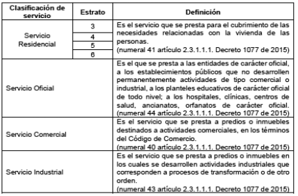 a) Quienes estén clasificados como usuarios en los siguientes servicios y estratos: