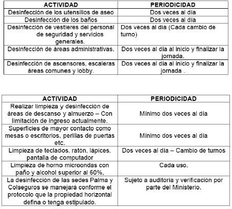 - No estarán habilitados los servicios de cafetería ni de cocineta para uso de los colaboradores de la Entidad, solo para uso exclusivo del personal de servicios generales.