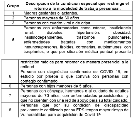 Desde el Grupo de Talento Humano se adelantarán las siguientes medidas para garantizar los reportes, seguimientos y controles de los colaboradores que presenten alguna condición de salud de base o reporte de síntomas y signos de alerta o casos de COVID-19 confirmados.