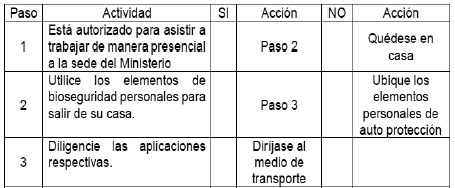 A continuación, se presenta el flujograma del proceso de reingreso al trabajo presencial en las sedes del ministerio: