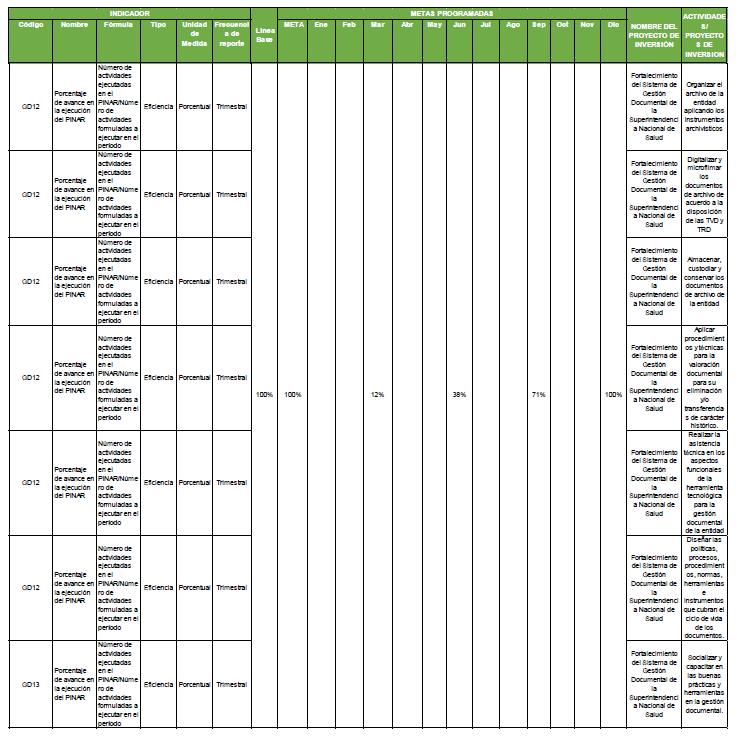 Que el Grupo de Gestión Documental de la Subdirección Administrativa, es el encargado de apoyar en la formulación de políticas, procesos y procedimientos relacionados con la Gestión Documental de la Superintendencia Nacional de Salud; dirigir y supervisar la ejecución, monitoreo, control y mejoramiento de los procedimientos de Gestión Documental de la Entidad; apoyar la implementación y sostenibilidad del Sistema de Gestión Institucional y sus componentes; entre otros.[3]