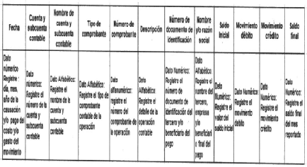 2.3.2 Deben estar detallados por tercero, en idioma español, al máximo nivel de cuenta del tercero beneficiario y utilizando una hoja de Excel por cada mes.