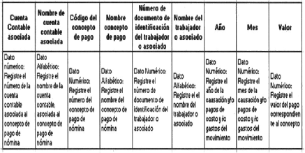 2.3.7 Los empleadores y/o cooperativas que no llevan en la contabilidad el detalle de los pagos a los trabajadores y/o asociados deben remitir la información del módulo de nómina, con la siguiente estructura: