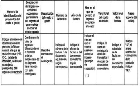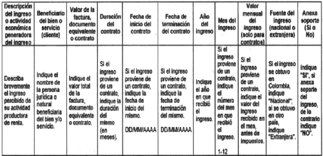 2.4.1 La relación de los ingresos, costos y gastos asociados a la actividad económica del trabajador independiente deben ser enviados en formato Excel con las siguientes estructuras: