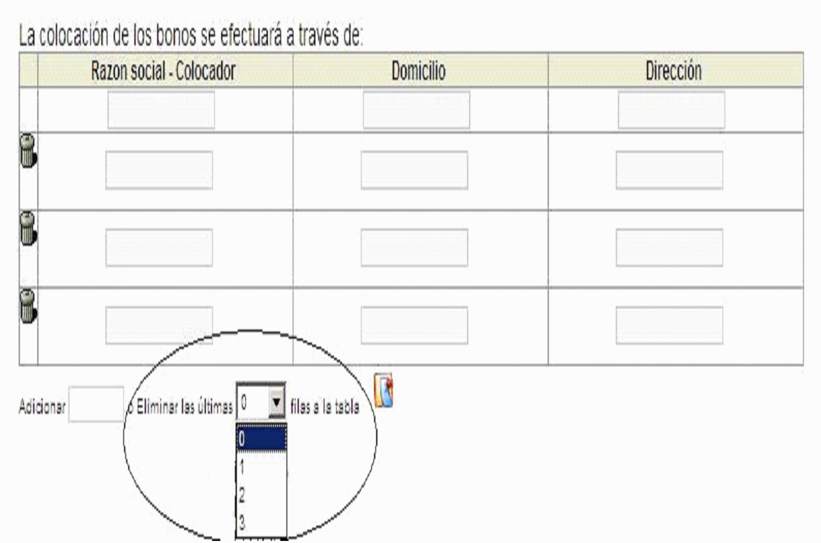 Se pueden eliminar una o varias filas a la vez. Para eliminar varias se selecciona el número deseado del campo Eliminar las últimas que se encuentra en la parte inferior izquierda de la tabla, si no se han creado filas entonces este campo no aparecerá, al eliminar varias filas se eliminarán las últimas filas, no intermedias.