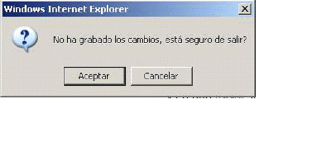 Al dar clic en el botón Aceptar es posible perder los cambios posteriores a la última fecha de grabación de la información o salir sin aplicar las modificaciones.