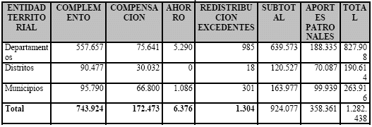 En el cuadro 3 se presenta el ajuste de las once doceavas, considerando el ajuste en aportes patronales reconocidos a los municipios, distritos y departamentos en forma agregada. En los anexos 1 y 2 se observa el ajuste a las once doceavas para departamentos y municipios incluyendo distritos.