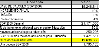 | C. SGP Educación 2009 Ultima doceava | 1.011.668 |