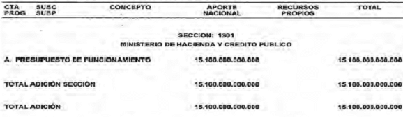 ADICIÓN AL PRESUPUESTO GENERAL DE LA NACIÓN.