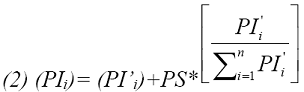 (1) PI'i = PI' * [ICTi·* K1 + DVRi·* K2 + PRVi - K3] *