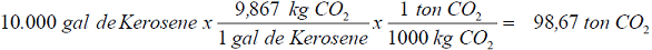 2. A partir del total de 10.000 galones de kerosene, se debe cuantificar la cantidad de toneladas de CO2e sobre la cual se certifica carbono neutro, utilizando los Factores de Conversión dados en la tabla del presente anexo, así: