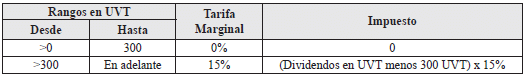 No obstante, lo previsto en el inciso 2 del presente artículo, la tarifa de retención en la fuente a título del impuesto sobre la renta y complementarios por concepto de dividendos y participaciones será del veinte por ciento (20%) cuando el valor individual o acumulado de los pagos o abonos en cuenta a favor de personas naturales sea igual o superior a mil cuatrocientas (1.400) Unidades de Valor Tributario -UVT, durante el respectivo año gravable.