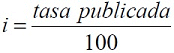 En primer lugar, la tasa efectiva anual publicada como un porcentaje deberá ser transformada a su forma decimal dividiendo por cien (100), así: