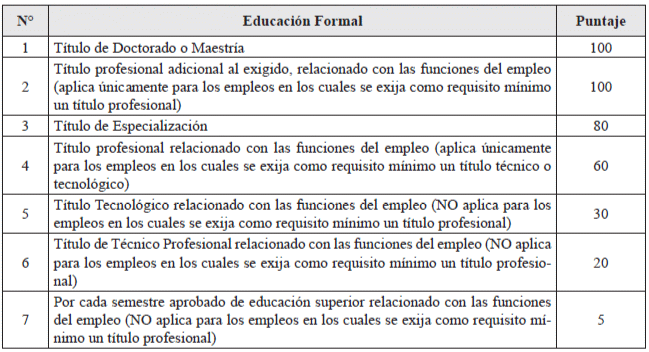 a) Con el servidor que acredite mayor puntaje de Educación Formal Adicional al requisito mínimo exigido sin exceder de 100 puntos, teniendo en cuenta el siguiente cuadro: