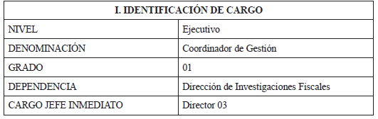 ARTÍCULO 1o. Adicionar a la descripción de funciones del cargo Coordinador de Gestión, Nivel Ejecutivo, Grado 01, adscrito a la Dirección de Investigaciones Fiscales, Contraloría Delegada para Investigaciones, Juicios Fiscales y Jurisdicción Coactiva contenida en el Manual Específico de Funciones, Requisitos y Competencias Laborales de los Empleos Públicos de la Planta Global de la Contraloría General de la República, en el sentido de adicionar el siguiente: