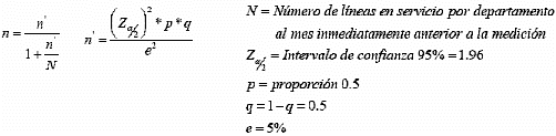 Ns Número de líneas en servicio para el segmento s en cada región (según población objetivo)