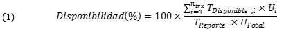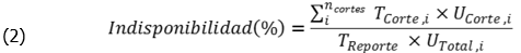 La indisponibilidad del servicio para un operador de televisión por cable HFC, IPTV y Satelital se calcula en función del número de cortes del servicio, su duración y el número de usuarios afectados de acuerdo a la siguiente fórmula: