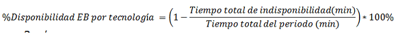 Con dicha información se calculará el porcentaje de disponibilidad mensual para cada una de las estaciones base, por tecnología, el cual corresponde a la siguiente expresión: