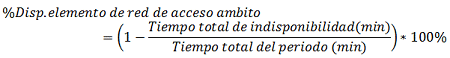 Con dicha información se calculará el porcentaje de disponibilidad mensual para cada una de los equipos de acceso para redes fijas, el cual corresponde a la siguiente expresión: