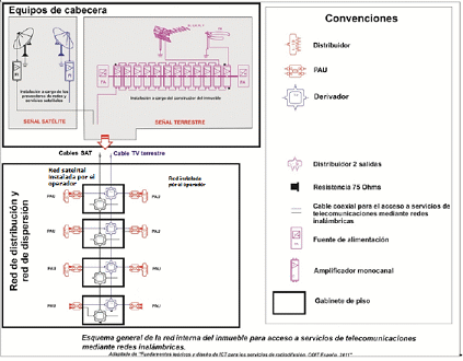 25. Incluye las señales para el acceso a los servicios de televisión, radiodifusión sonora por cable coaxial, telefonía y acceso a Internet, las cuales son adaptadas para ser transmitidas en el cable coaxial en las bandas de frecuencia correspondientes de televisión.