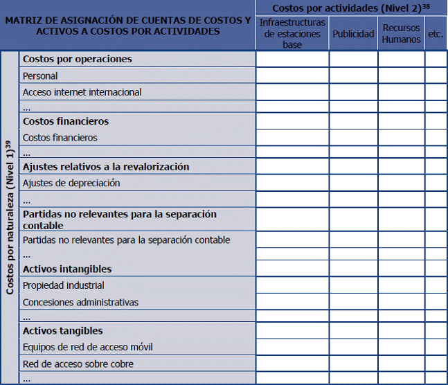 39. Las cuentas de costos por naturaleza de Nivel 1 desagregadas en esta matriz deberán corresponder con las cuentas identificadas en la sección 1.2.2 y 1.6.1, respectivamente