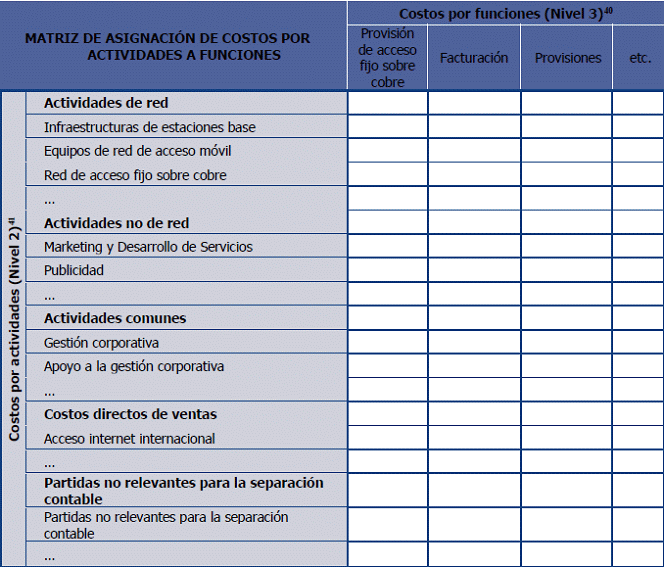 40. Las cuentas de costos por funciones de Nivel 3 incluidas, deberán corresponder, como mínimo, con el nivel de desagregación indicado por la CRC en el plan de cuentas del Esquema de Separación Contable (Anexo 9.3).
