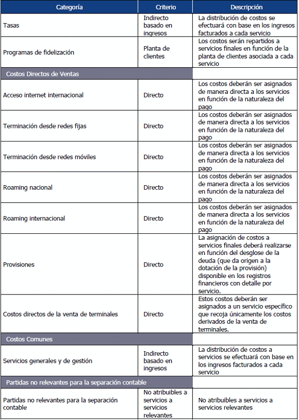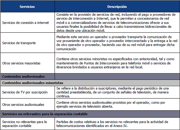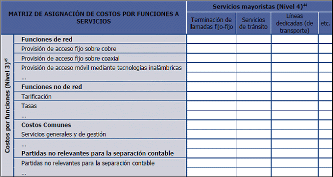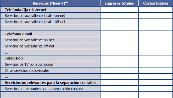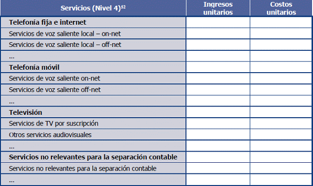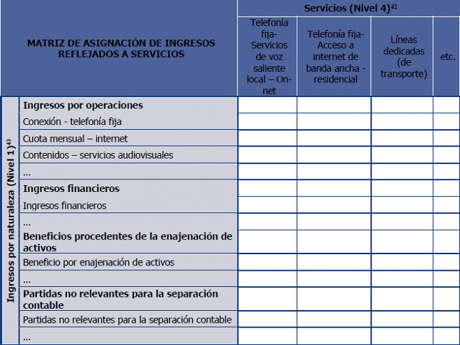 42. Los servicios incluidos en esta matriz, deberán corresponder, como mínimo, con el nivel de desagregación indicado por la CRC en el plan de cuentas del Esquema de Separación Contable (Anexo 9.3).