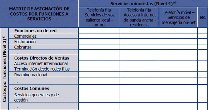 46. Los servicios minoristas incluidos en esta matriz, deberán corresponder, como mínimo, con el nivel de desagregación indicado por la CRC en el plan de cuentas del Esquema de Separación Contable (Anexo 9.3)