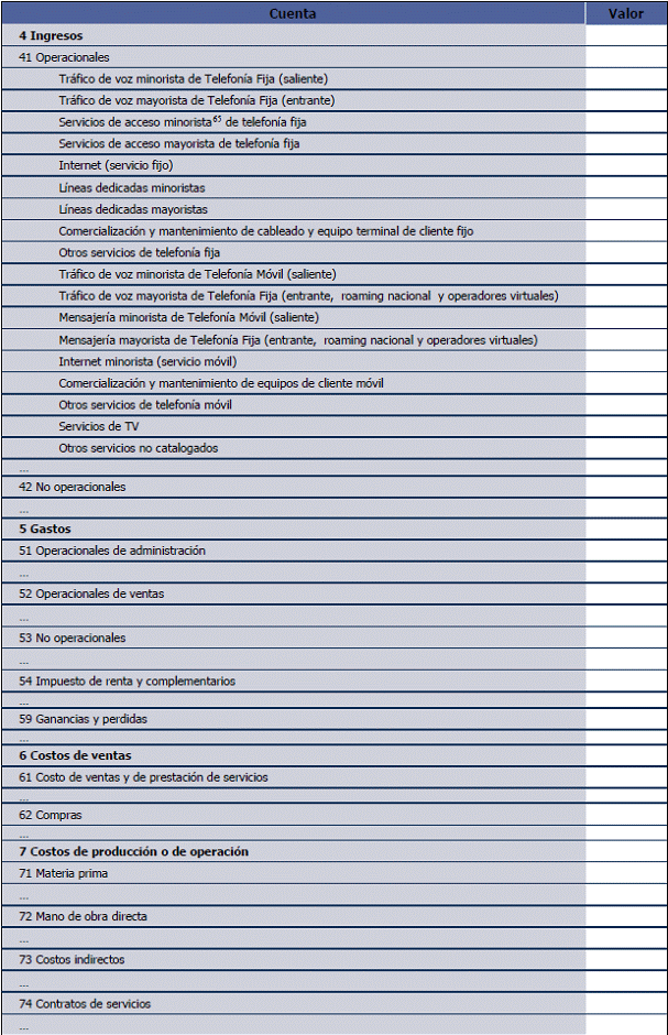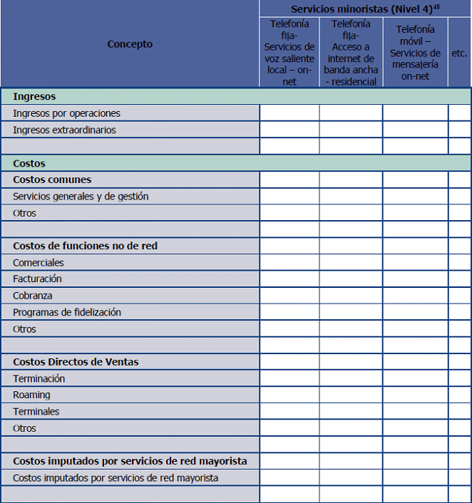 48. Los servicios minoristas incluidos en este reporte, deberán corresponder, como mínimo, con el nivel de desagregación indicado por la CRC en el plan de cuentas del Esquema de Separación Contable (Anexo 9.3)