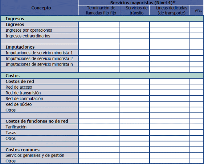 49. Los servicios mayoristas incluidos en este reporte, deberán corresponder, como mínimo, con el nivel de desagregación indicado por la CRC en el plan de cuentas del Esquema de Separación Contable (Anexo 9.3)
