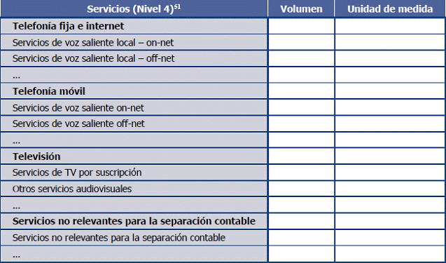 51. Los servicios desagregados en este reporte deberán incluir, como mínimo, los servicios requeridos por la CRC en el Esquema de Separación Contable