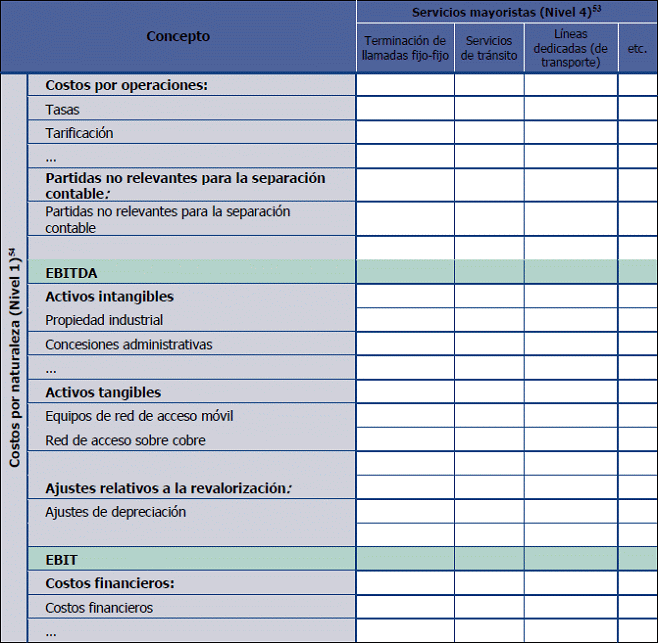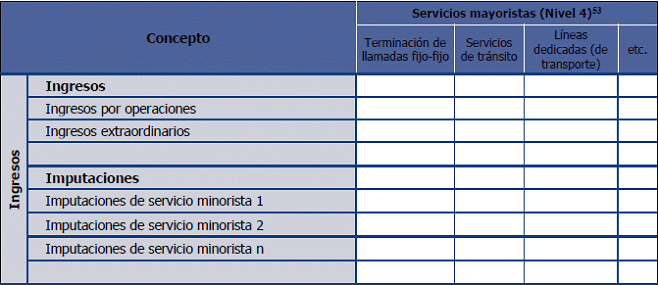 53. Los servicios mayoristas incluidos en este reporte, deberán corresponder, como mínimo, con el nivel de desagregación indicado por la CRC en el plan de cuentas del Esquema de Separación Contable (Anexo 9.3)