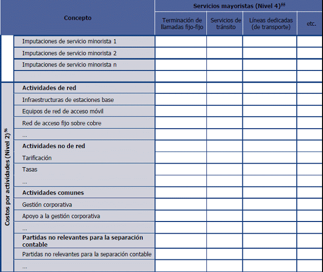 57. La desagregación por activos introducida deberá corresponder, como mínimo, con el nivel requerido por la CRC en el Esquema de Separación Contable.