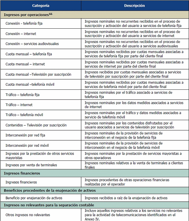 34. Las cuentas de ingresos de Nivel 1 incluidas, deberán corresponder, como mínimo, con el nivel de desagregación indicado por la CRC en el plan de cuentas del Esquema de Separación Contable (Anexo 9.3).