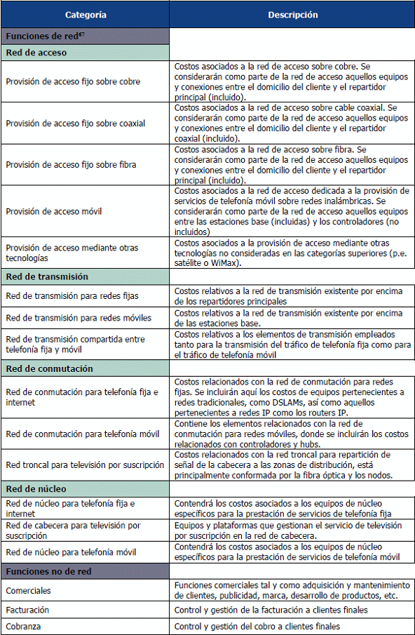 67. Las funciones de red se constituyen a partir de la atribución de las actividades de red (costos indirectos) sobre los activos de red definidos en el nivel anterior