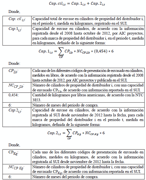 PARAGRAFO 2. La capacidad total de envase en cilindros, de propiedad del distribuidor i, en el periodo t, se calculara de la siguiente forma: