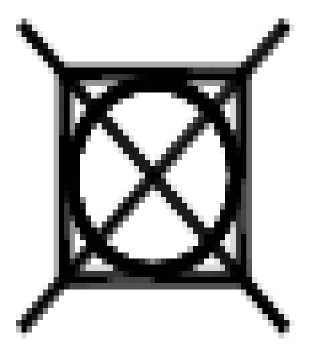 El cuadrado con las dos líneas diagonales en la esquina superior izquierda representa el secado lejos del sol. Este símbolo se coloca sobre los símbolos para secado en tendedero, secado por escurrimiento y secado extendido, para indicar que el proceso de secado natural se debe realizar lejos del sol.