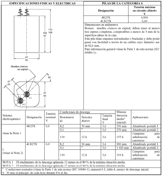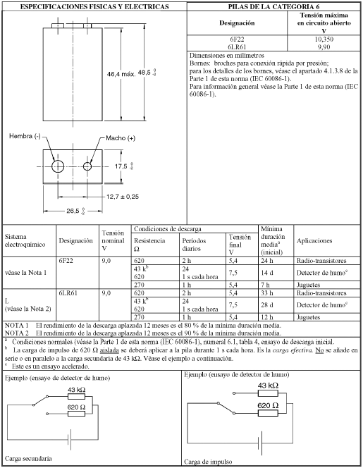 Pruebas de descarga de pilas alcalinas y cinc carbón de 6 y 9 voltios
