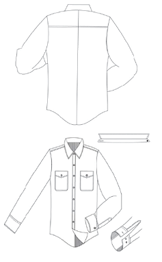 a) Camisa blanca para corbata, de manga larga para clima frío y manga corta para climas cálidos, con presillas en los hombros y dos bolsillos en el pecho, con tapa;
