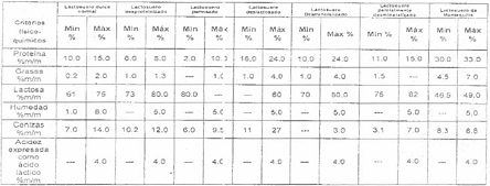 Requisitos fisicoquímicos de los lactosueros dulces