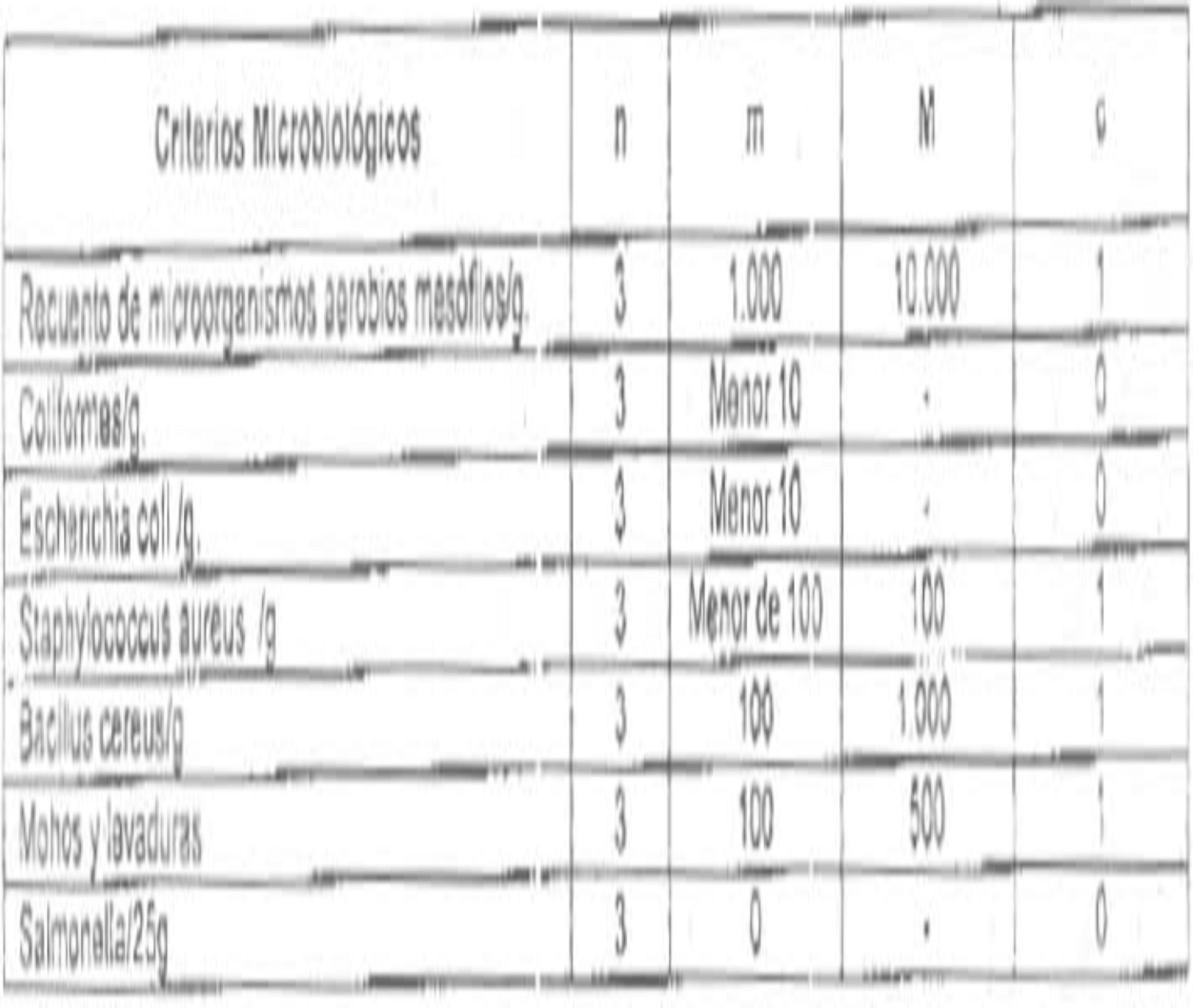 | C: Número de muestras permisibles con resultados entre m y M”. | |