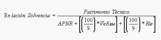 ARTÍCULO 2.2.1.2. RELACIÓN DE SOLVENCIA. <Resolución derogada por el artículo 12.2.1.1.4 del Decreto 2555 de 2010> MODIFICADO RES. 513 DEL 06/08/2003, ARTÍCULO 1o. Las sociedades comisionistas deberán mantener una relación de solvencia mínima del 9% (nueve por ciento), la cual se calcula dividiendo el numerador por el denominador. El numerador corresponde al valor del patrimonio técnico de las sociedades comisionistas de bolsa y el denominador es la sumatoria de los activos ponderados por nivel de riesgo, del valor en riesgo multiplicado por 100/9 (cien novenos) y del valor de riesgo de liquidación /entrega multiplicado por 100/9 (cien novenos). La relación se expresa mediante la siguiente formula aritmética: