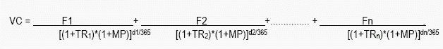 b. Casos en los que no existen, para el día de la valoración, precios justos de intercambio determinados de acuerdo con el literal (a) del artículo 1.7.1.2 y existen tasas de referencia y márgenes de acuerdo con el literal (b), ídem. Cuando no exista el precio a que hace referencia el literal anterior, de acuerdo con lo previsto en el literal b del artículo 1.7.1.2 de la presente norma, el valor de mercado del respectivo valor o título se debe estimar o aproximar mediante el cálculo de la sumatoria del valor presente de los flujos futuros por concepto de rendimientos y capital, de acuerdo con el siguiente procedimiento: