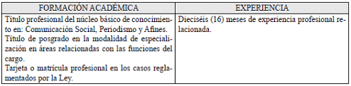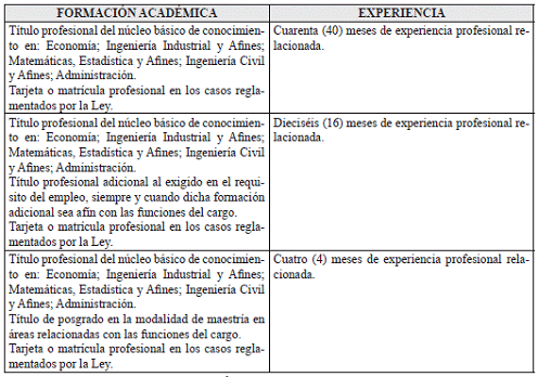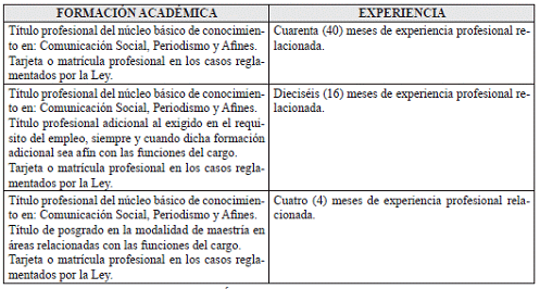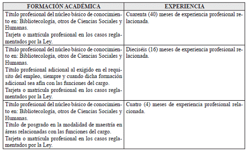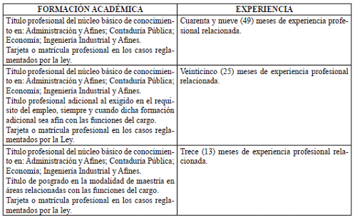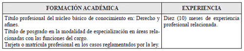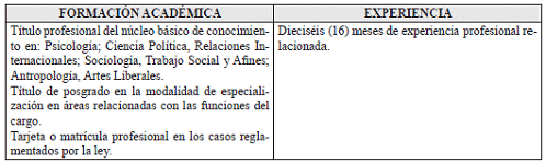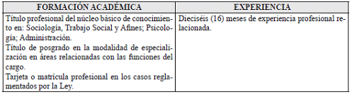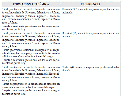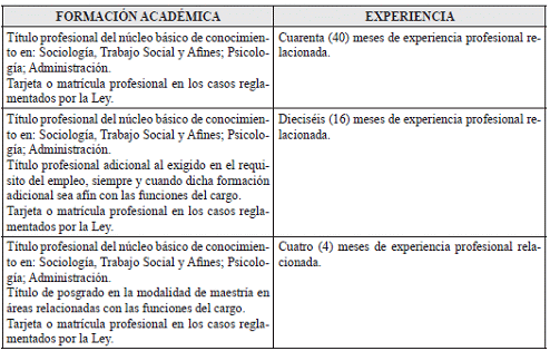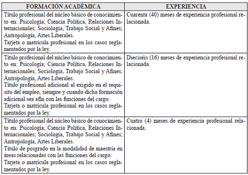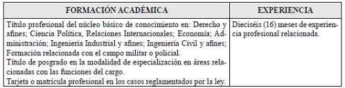 VII. REQUISITOS DE FORMACION ACADÉMICA Y EXPERIENCIA
