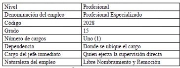 I. IDENTIFICACIÓN DEL EMPLEO