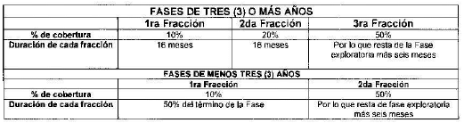 1. Término de duración de las distintas Fases del periodo de Exploración, estipuladas para ejecutar las actividades correspondientes a los programas Mínimo, Adicional y Posterior en su caso.