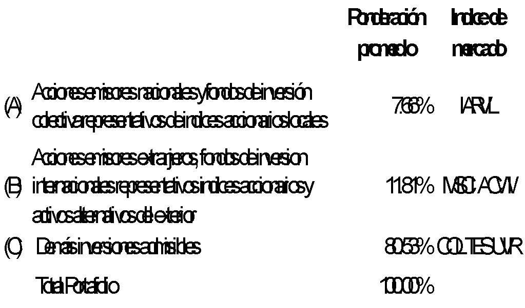 II. De acuerdo con lo dispuesto en el numeral 2.6.2, Capítulo II, Título III de la Parte II de la CBJ, los porcentajes de ponderación de las inversiones a tener en cuenta en el cálculo de las rentabilidades de los índices del mercado serán los siguientes: